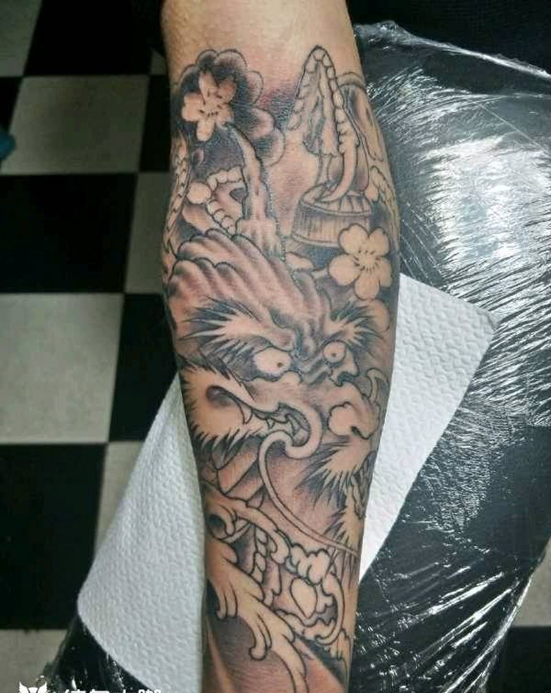 • T网红王老大花腿龙纹身图片_腿部新传统纹身图案