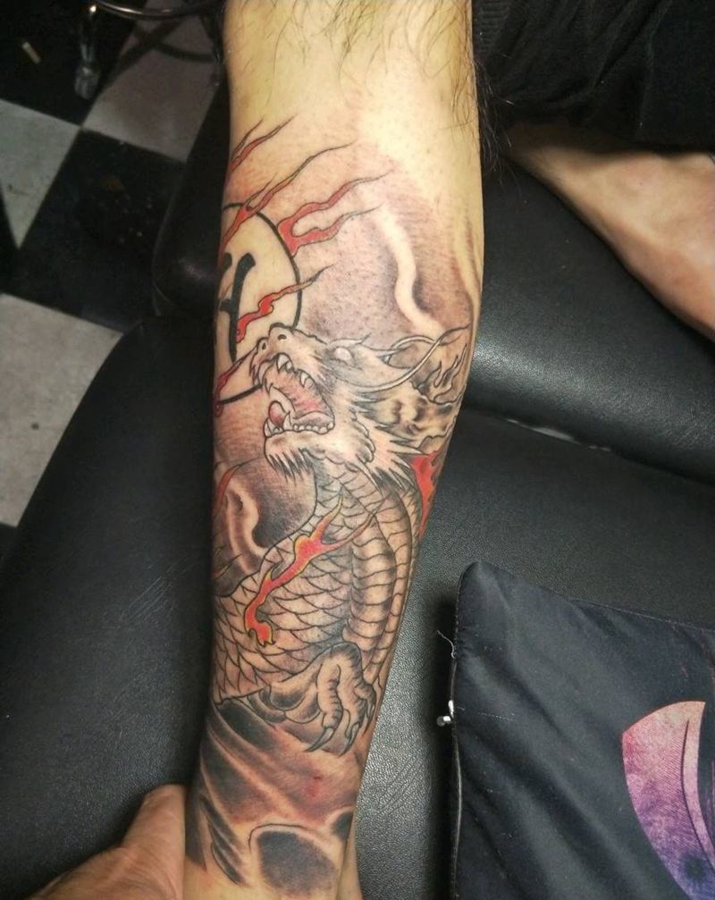 • T网红王老大花腿龙纹身图片_腿部新传统纹身图案