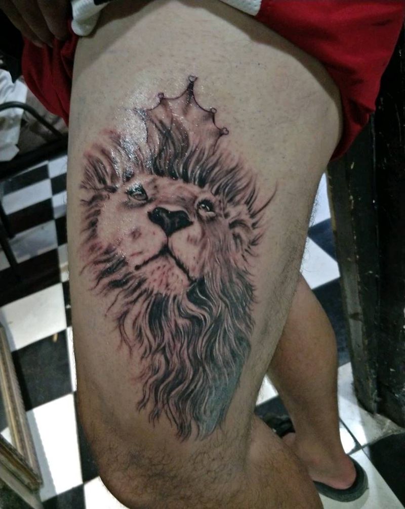 • T网红王老大花腿龙纹身图片_腿部新传统纹身图案