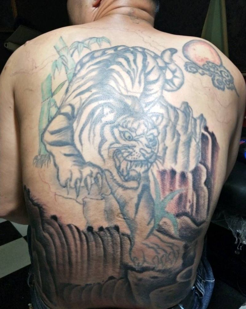 当前位置: 首页 >江西省上饶市纹身店-小熊纹身纹身图案>老虎添加背景纹身图片