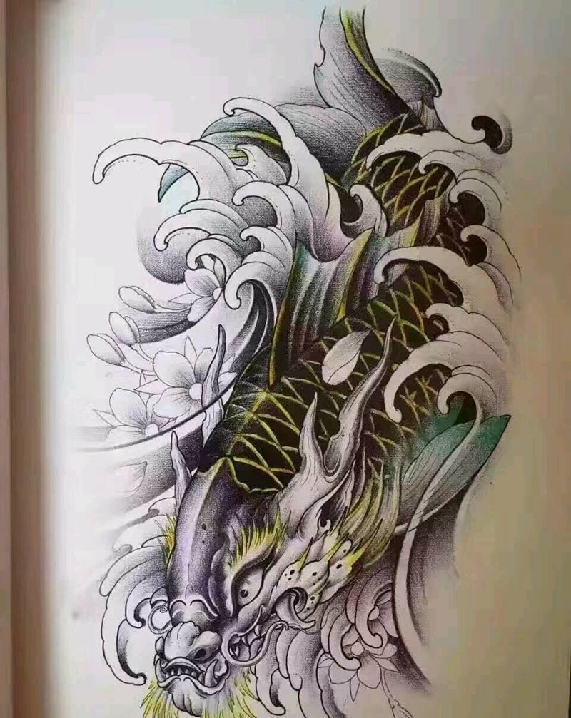 • T网红王老大花腿龙纹身图片_腿部新传统纹身图案