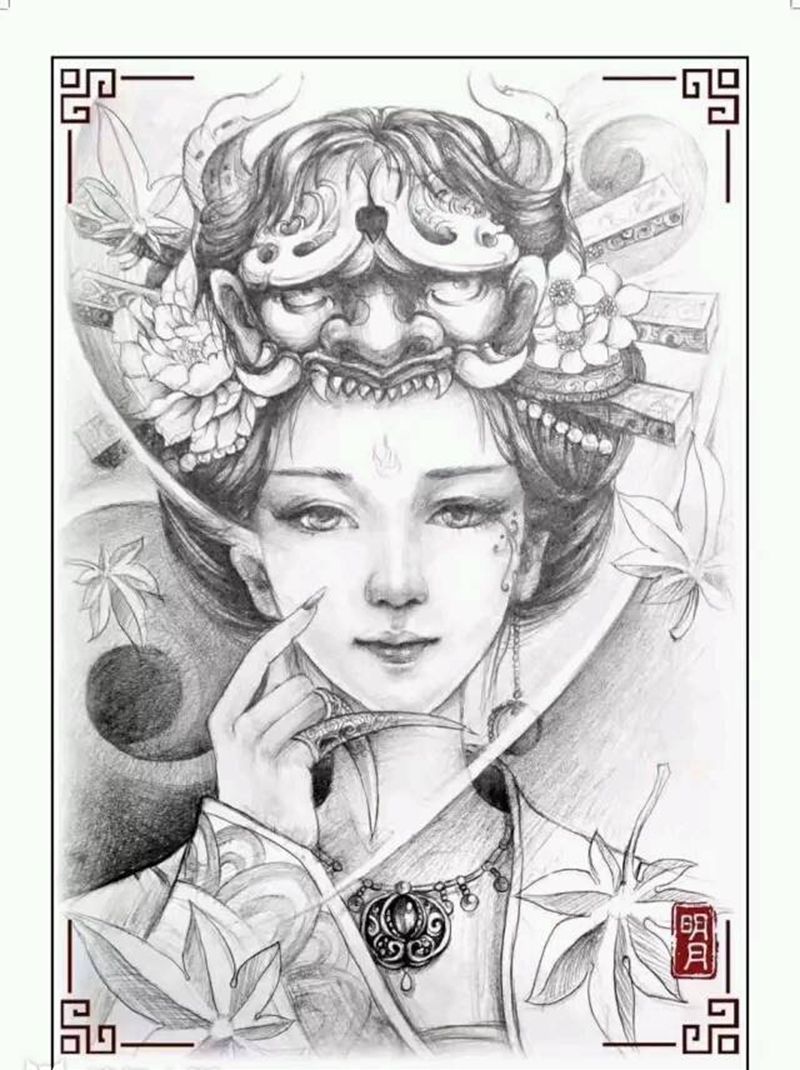一组9张般若纹身手