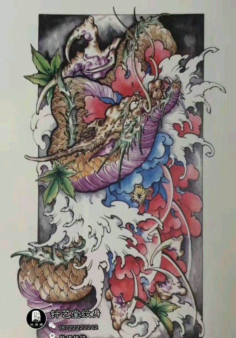 • T网红王老大花腿龙纹身图片_腿部新传统纹身图案