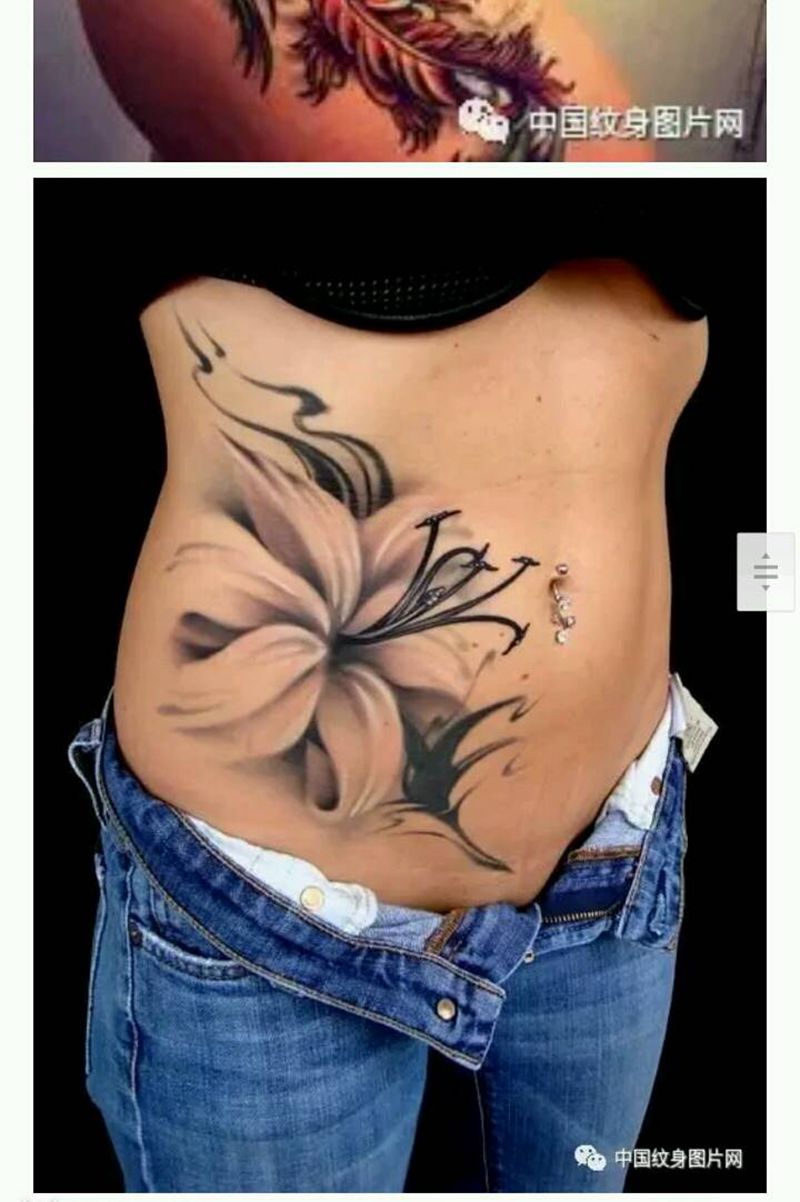 • 时尚性感的腹部莲花纹身图案