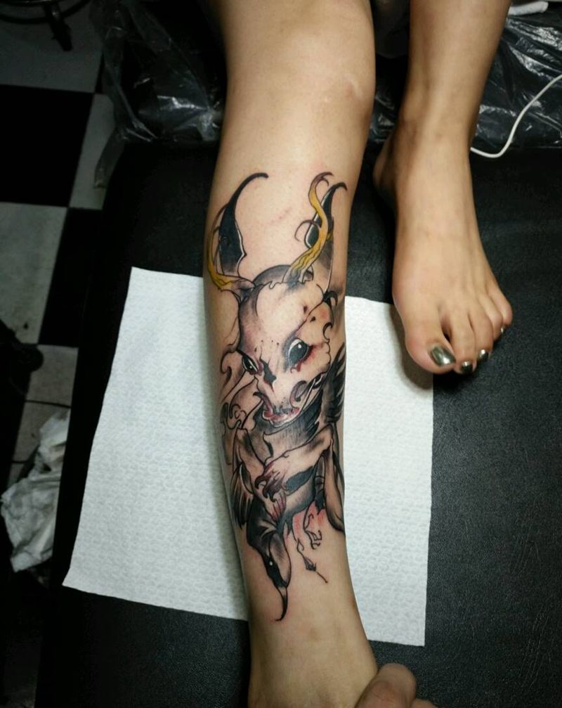 • T网红王老大花腿龙纹身图片_腿部新传统纹身图案