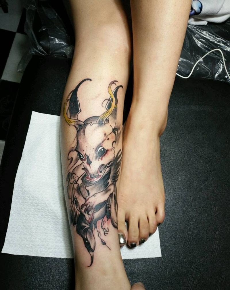 • T网红王老大花腿龙纹身图片_腿部新传统纹身图案