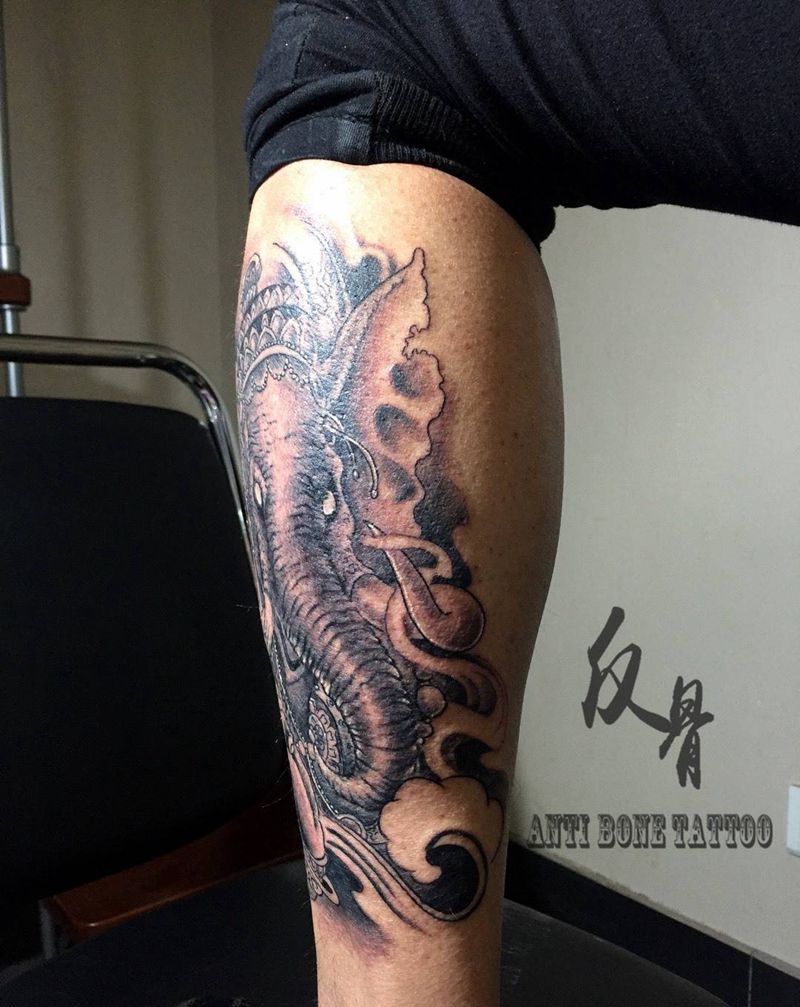 当前位置: 首页 >山东省济南市纹身店-反骨刺青纹身工作室纹身图案>象神一枚纹身图片