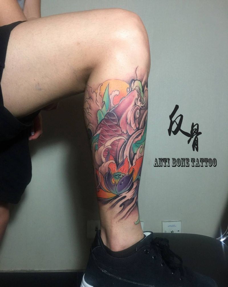 当前位置: 首页 >山东省济南市纹身店-反骨刺青纹身工作室纹身图案>彩色大鱼纹身图片_成品手臂腿部传统动物彩图纹身图案