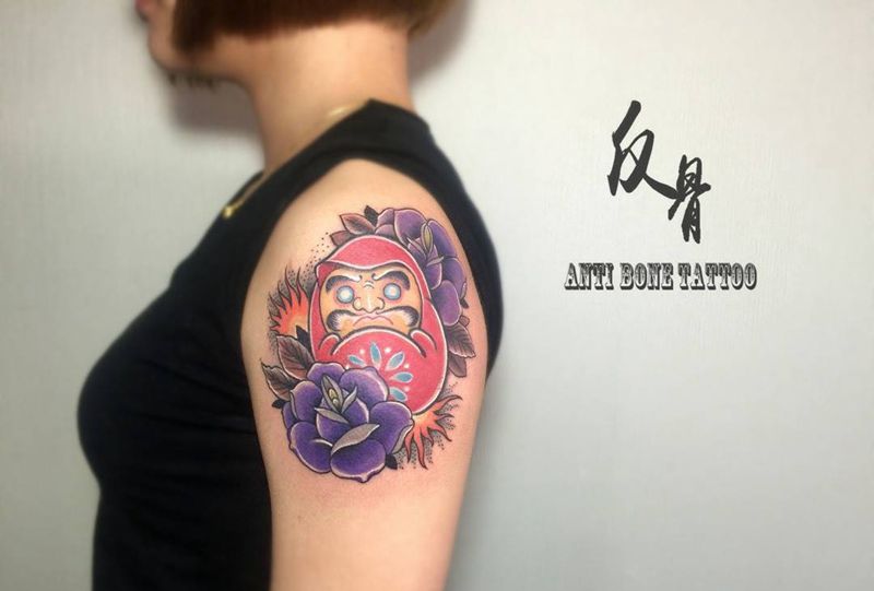 当前位置: 首页 >山东省济南市纹身店-反骨刺青纹身工作室纹身图案>达摩不倒翁纹身图片_成品肩部背部手臂腿部手部欧美清新鬼神彩图纹身图案