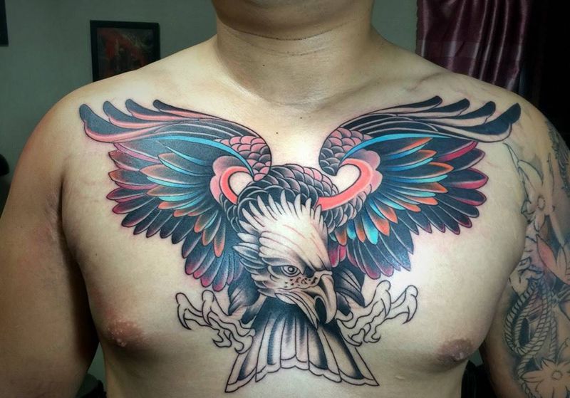 鹰(未完成作品)纹身图片_成品胸部背部欧美动物静物彩图反骨刺青纹身图案