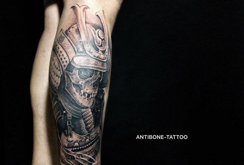 当前位置: 首页 >山东省济南市纹身店-反骨刺青纹身工作室纹身图案># 鬼武士#纹身图片_成品腿部欧美写实人物鬼神黑白反骨刺青培训纹身图案