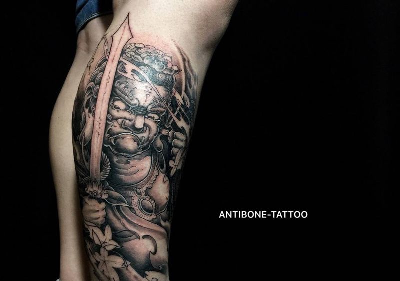 黑灰满背纹身图案