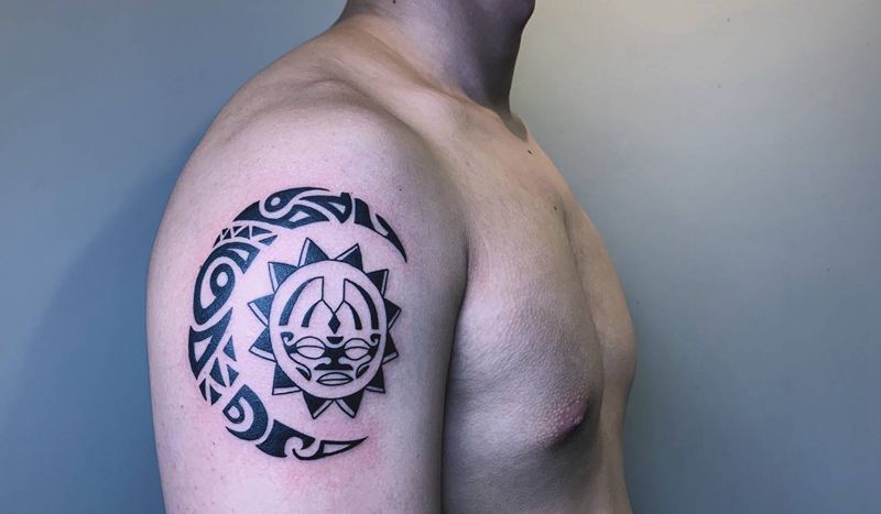 • 纹身吧推荐的披肩图腾半胛纹身图案作品展示