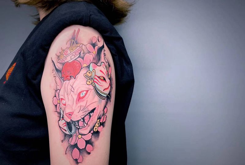 当前位置: 首页 >山东省济南市纹身店-反骨刺青纹身工作室纹身图案>近期彩图纹身图片_手臂背部New School水彩纹身图案