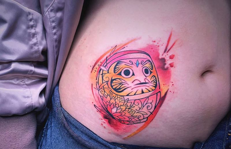 #水彩达摩蛋遮盖小清新#纹身图片_腹部腰部水彩水墨达摩蛋纹身图案