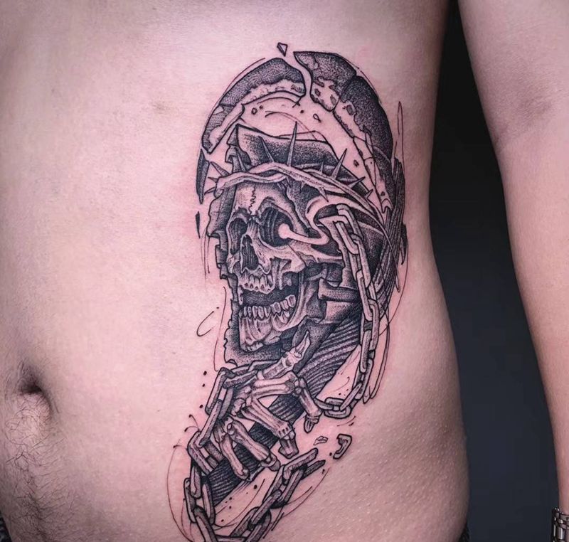 当前位置: 首页 >山东省济南市纹身店-反骨刺青纹身工作室纹身图案>#死神#纹身图片_腰部点刺欧美写实死神纹身图案