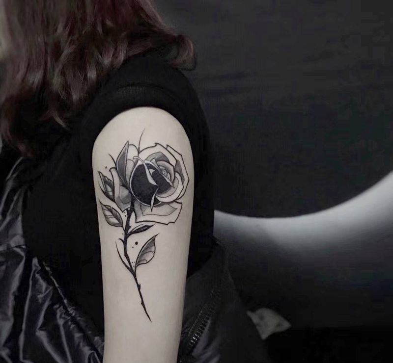 黑色玫瑰纹身图片_手臂Old SchoolNew School纹身图案