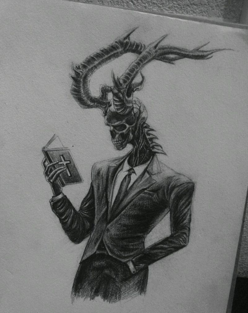 撒旦纹身图片_背部手臂腿部手部脚部欧美写实宗教成品手稿纹身图案