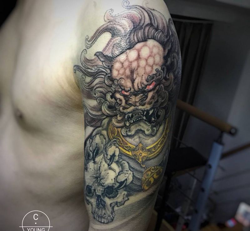 当前位置: 首页 >江西省上饶市纹身店-兮阳刺青纹身图案>唐狮纹身图片_成品手部手臂腿部背部传统动物新传统纹身图案