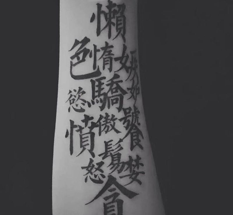 七宗罪纹身图片_字符图腾宗教手臂腿部成品几何贴纸传统插画纹身图案