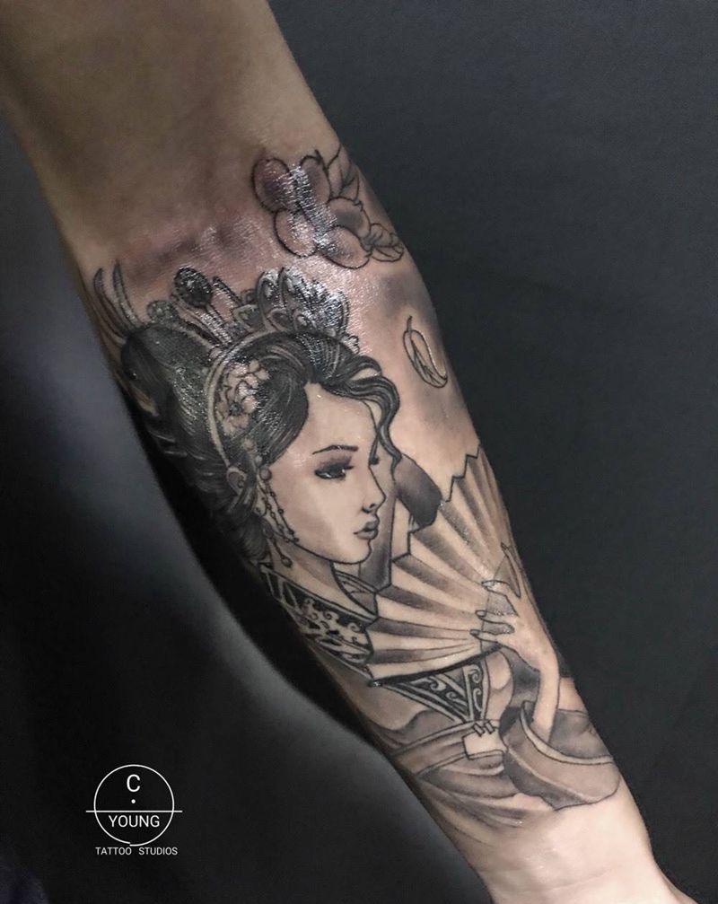 当前位置: 首页 >江西省上饶市纹身店-兮阳刺青纹身图案>艺妓纹身图片_手臂腿部背部传统国画肖像人物纹身图案