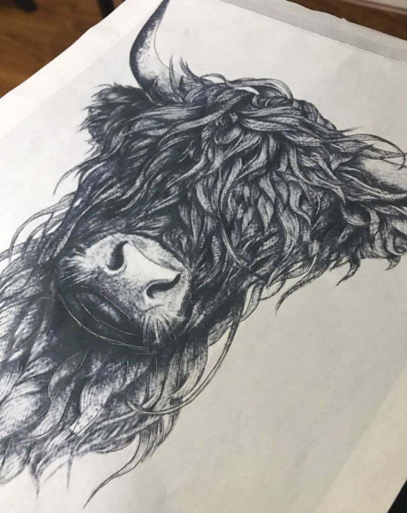 耗牛纹身图片_成品手臂欧美清新动物写实腿部背部胸部纹身图案