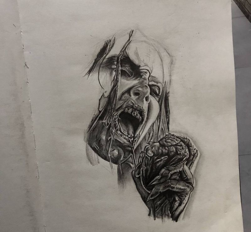 行屍走肉纹身图片_成品插画手稿手臂背部胸部欧美写实原创人物纹身图案
