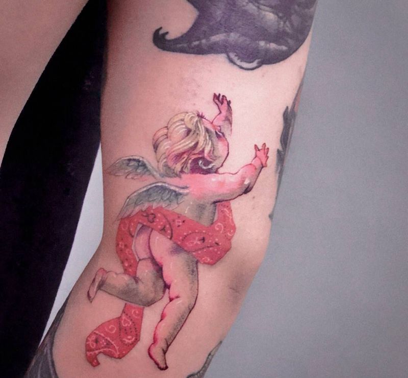 当前位置: 首页 >山东省济南市纹身店-拾遗刺青纹身图案>天使纹身图片_手臂水彩纹身图案