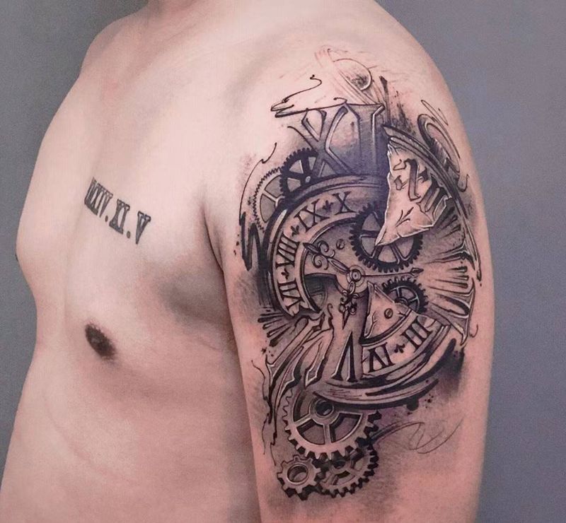 当前位置: 首页 >山东省济南市纹身店-拾遗刺青纹身图案>钟表ll纹身图片_手臂欧美写实纹身图案