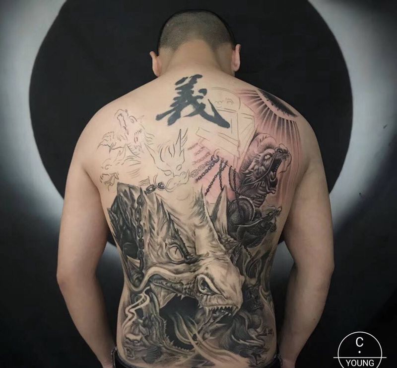• T云龙九郎纹身图片_背部老传统云龙九郎纹身图案