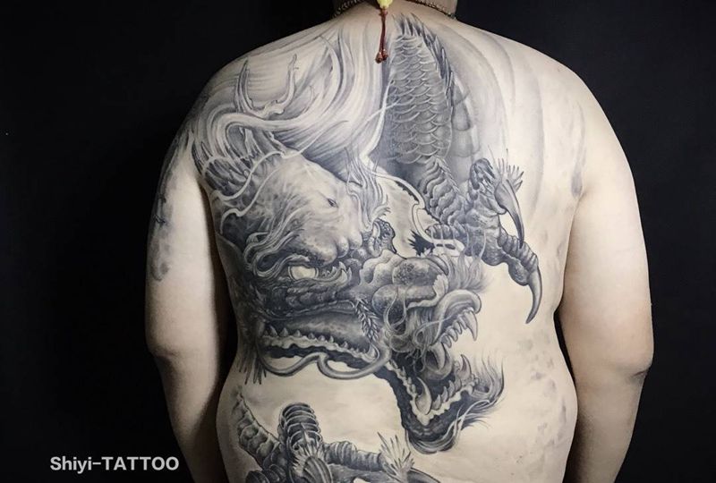 当前位置: 首页 >山东省济南市纹身店-拾遗刺青纹身图案>龙临纹身图片_成品背部传统习俗国画动物纹身图案