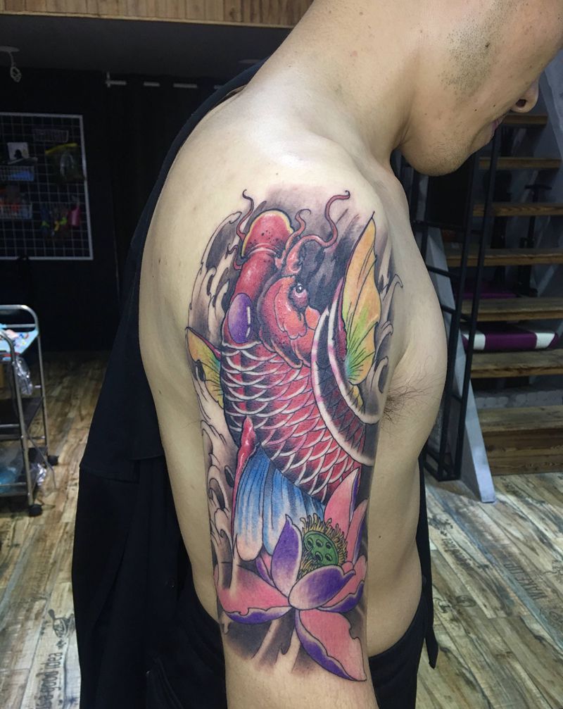 当前位置: 首页 >江西省上饶市纹身店-玖柒刺青纹身图案>大臂鲤鱼遮盖纹身图片_新传统纹身图案