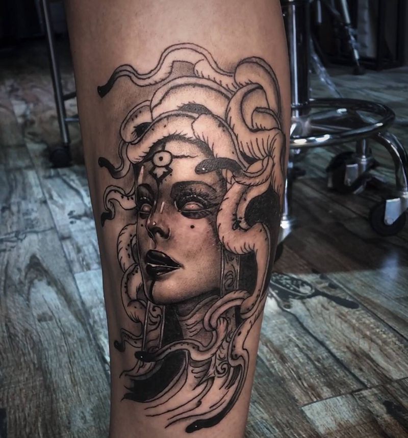当前位置: 首页 >江西省上饶市纹身店-玖柒刺青纹身图案>美杜莎疤痕遮盖纹身图片_腿部纹身图案