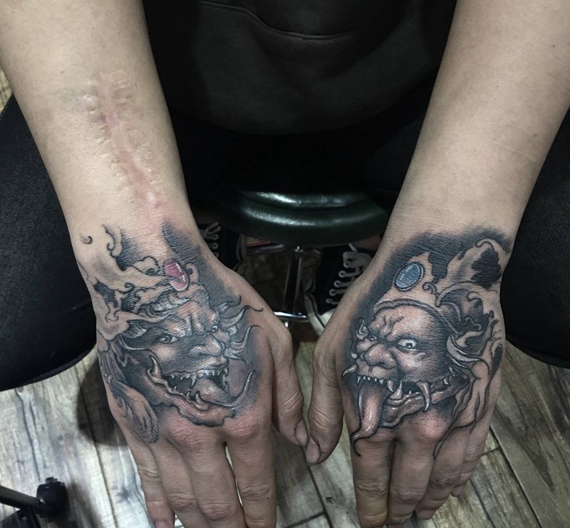 当前位置: 首页 >江西省上饶市纹身店-玖柒刺青纹身图案>手背黑白无常纹身图片_手部纹身图案