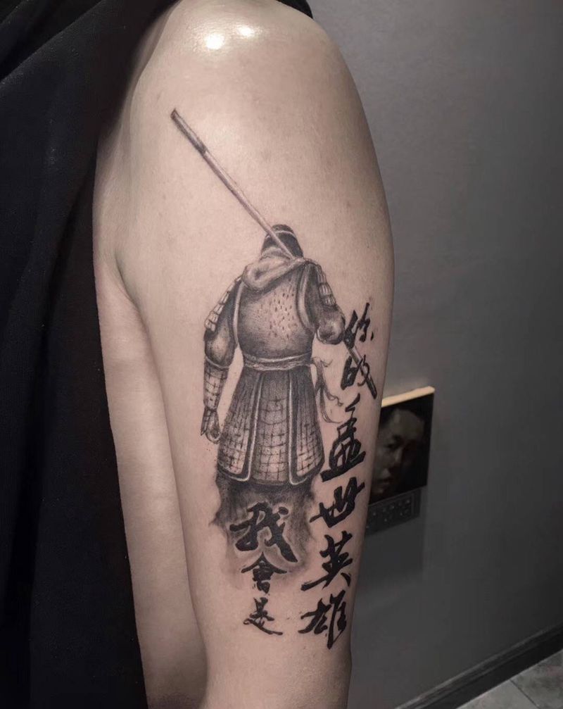 至尊宝背影纹身图片_手臂欧美写实纹身图案