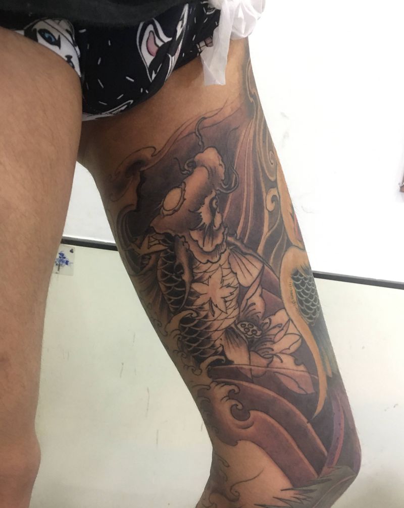 当前位置: 首页 >江西省上饶市纹身店-玖柒刺青纹身图案>鲤鱼纹身图片_腿部纹身图案