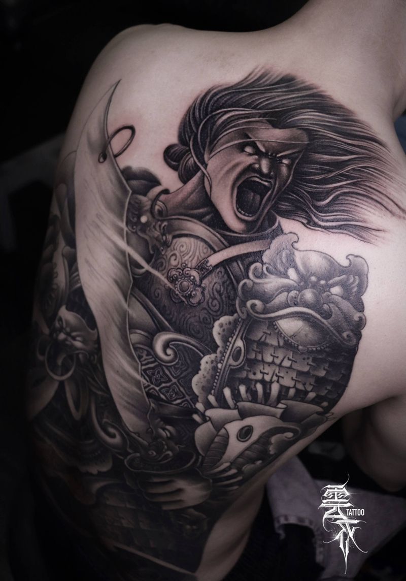 黑灰满背纹身图案