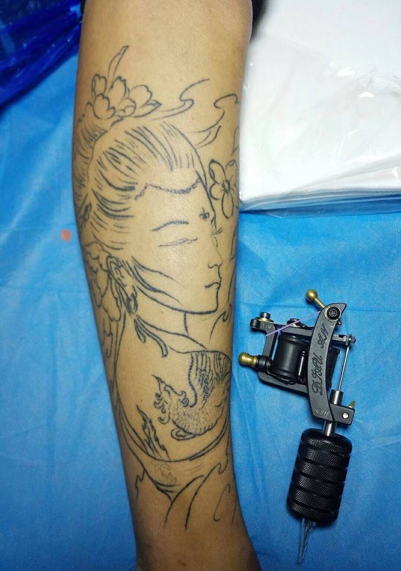 当前位置: 首页 >山东省济南市纹身店-云衣刺青纹身图案>小腿艺妓修改。纹身图片