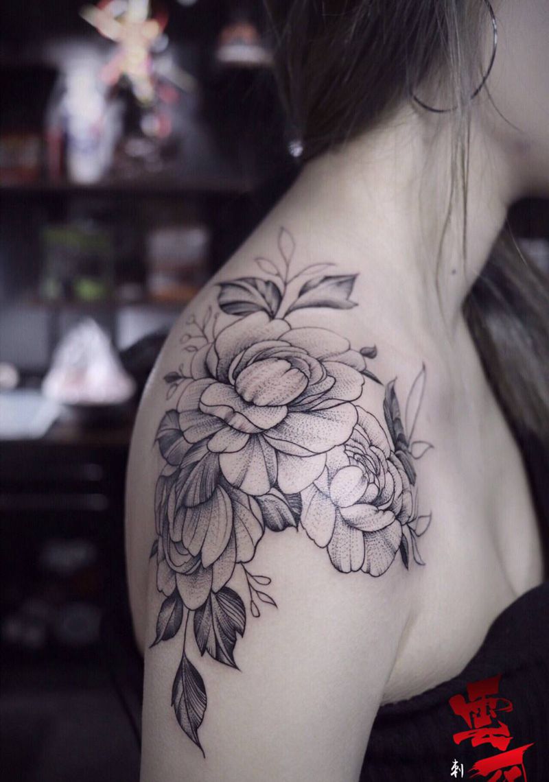 当前位置: 首页 >山东省济南市纹身店-云衣刺青纹身图案>素花纹身图片_肩部手臂点刺纹身图案