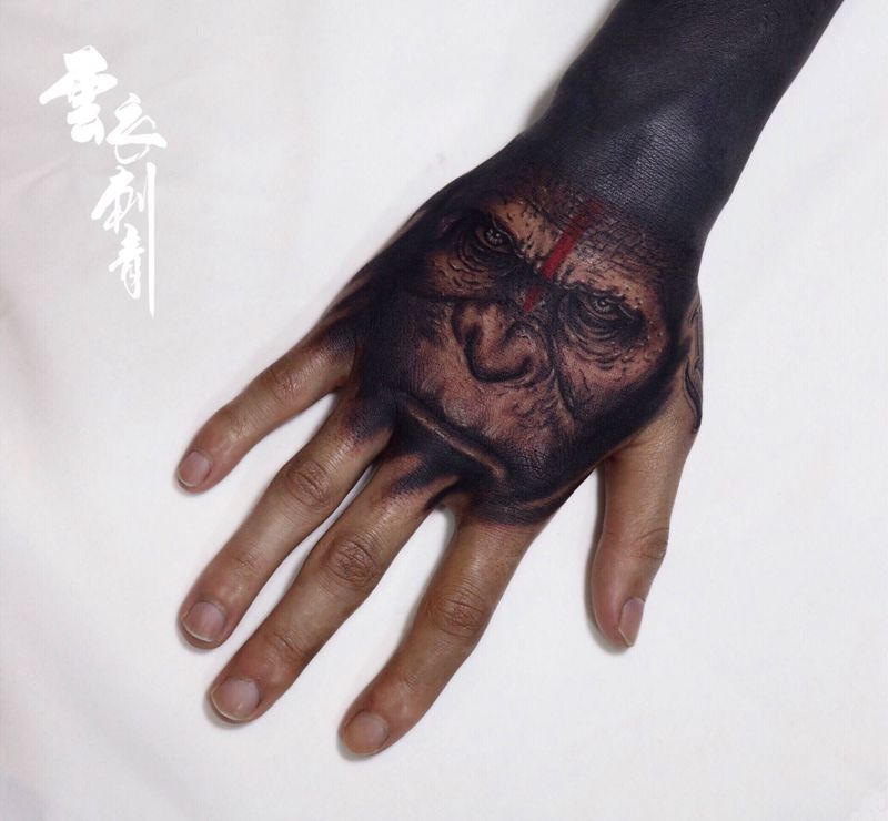 猩球崛起·凯撒纹身图片_手部欧美写实纹身图案