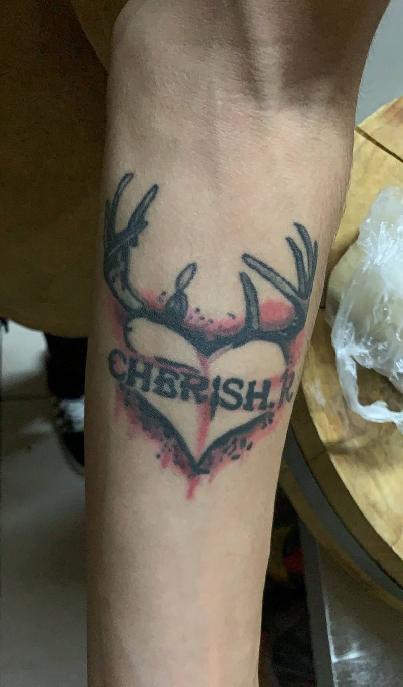 当前位置: 首页 >山东省济南市纹身店-云衣刺青纹身图案>以旧换新(修改)纹身图片_手臂水墨水彩纹身图案