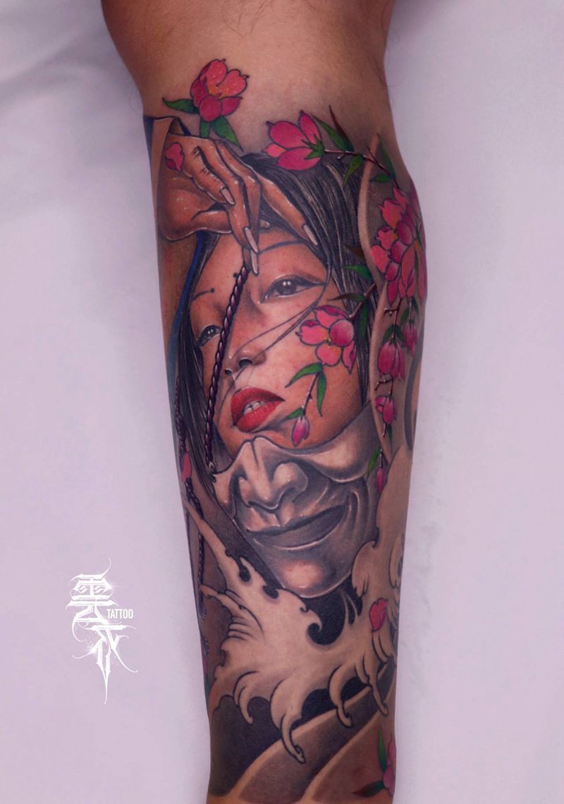 当前位置: 首页 >山东省济南市纹身店-云衣刺青纹身图案>#鬼伎#纹身图片_腿部新传统纹身图案