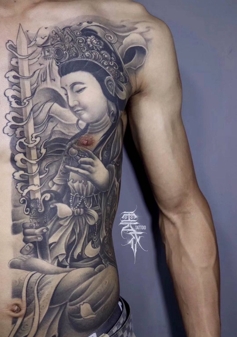 当前位置: 首页 >山东省济南市纹身店-云衣刺青纹身图案>虚空藏菩萨纹身图片_腹部胸部新传统纹身图案