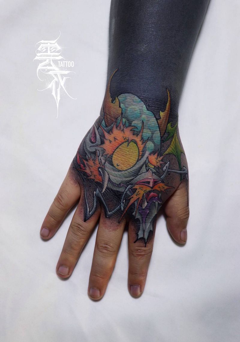 当前位置: 首页 >山东省济南市纹身店-云衣刺青纹身图案>龙纹身图片_手部New School纹身图案