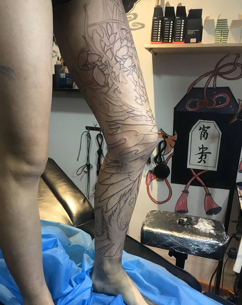 当前位置: 首页 >江西省上饶市纹身店-冰墨刺青纹身图案>凤凰纹身图片_腿部新传统纹身图案