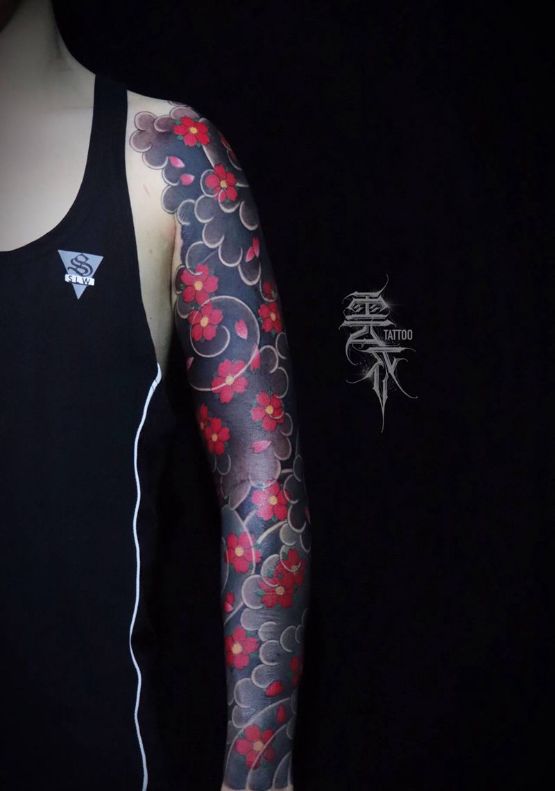 当前位置: 首页 >山东省济南市纹身店-云衣刺青纹身图案>樱花花臂纹身图片_手臂老传统纹身图案