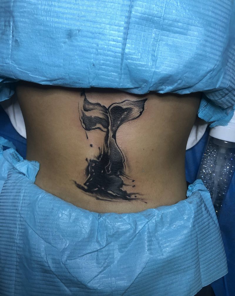 鲸鱼尾纹身图片_背部水墨纹身图案