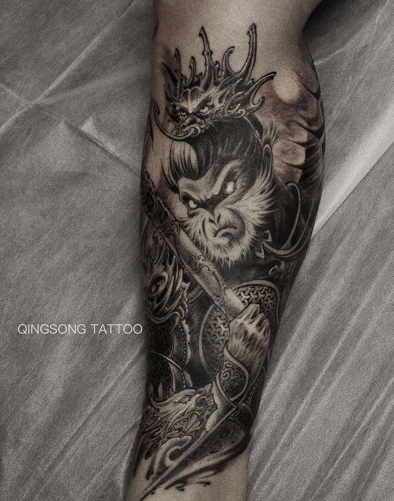 当前位置: 首页 >山东省济南市纹身店-青松TATTOO纹身图案>齐天大圣纹身图片_腿部新传统纹身图案