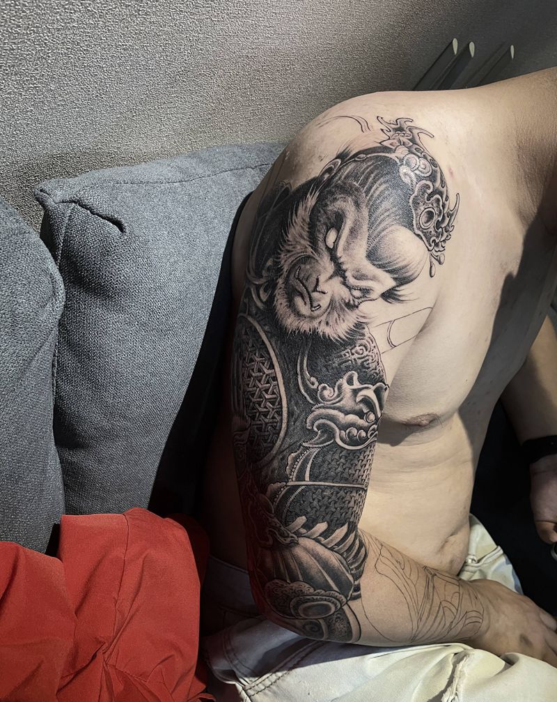 当前位置: 首页 >山东省济南市纹身店-青松TATTOO纹身图案>花臂作品纹身图片_手臂新传统纹身图案