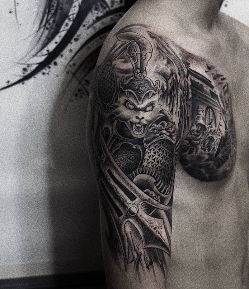 兔将军驰骋沙场纹身图片_胸部手臂新传统欧美写实纹身图案